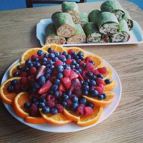 Oatmeal cups, hard boiled eggs, and whole fruit basket